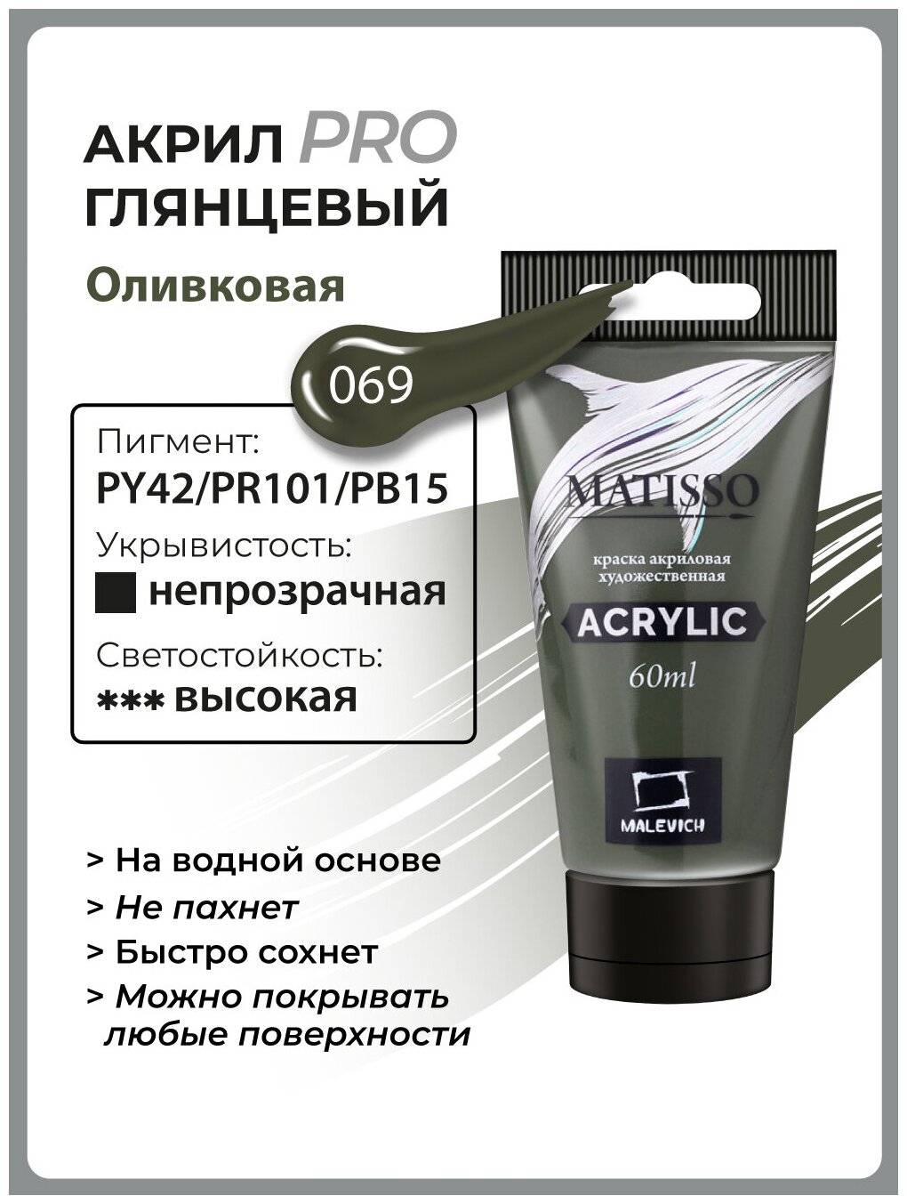 Купить Акриловая краска Малевичъ Matisso, оливковый, 60 мл