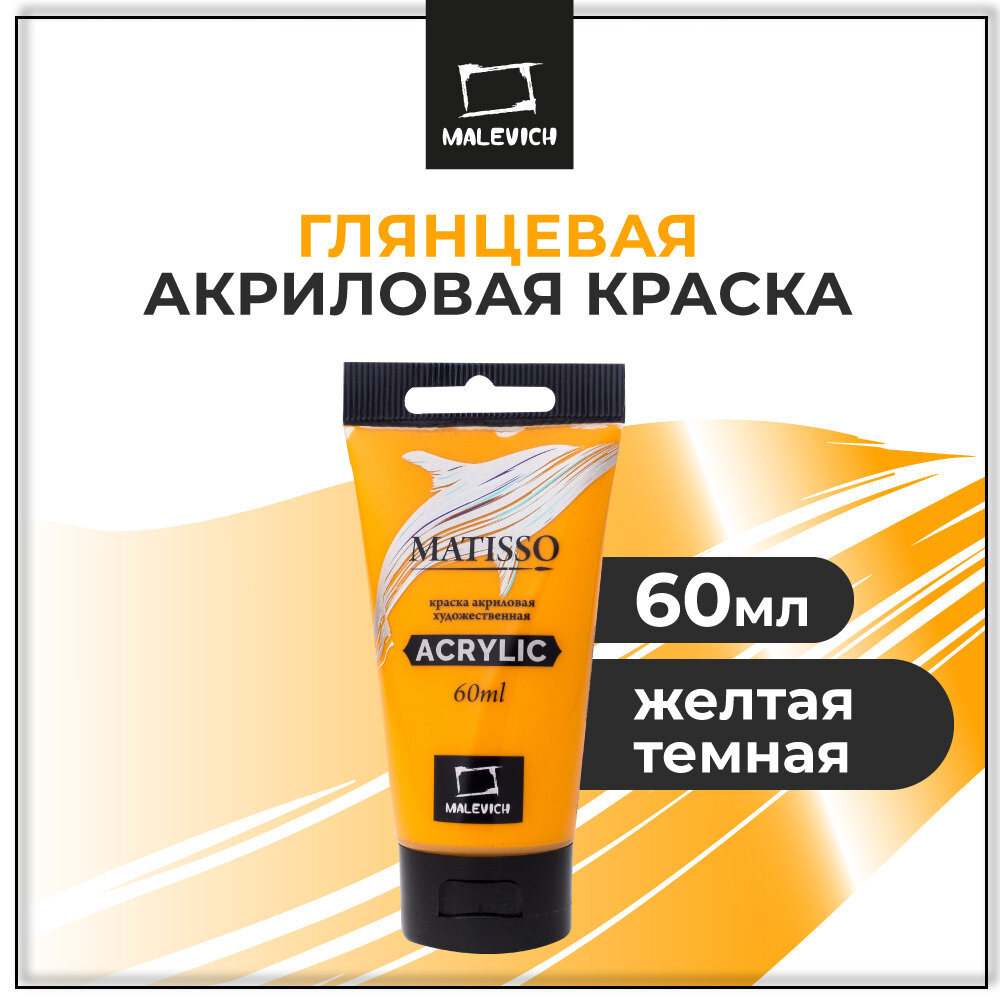 Купить Акриловая краска Малевичъ Matisso, желтый темный, 60 мл