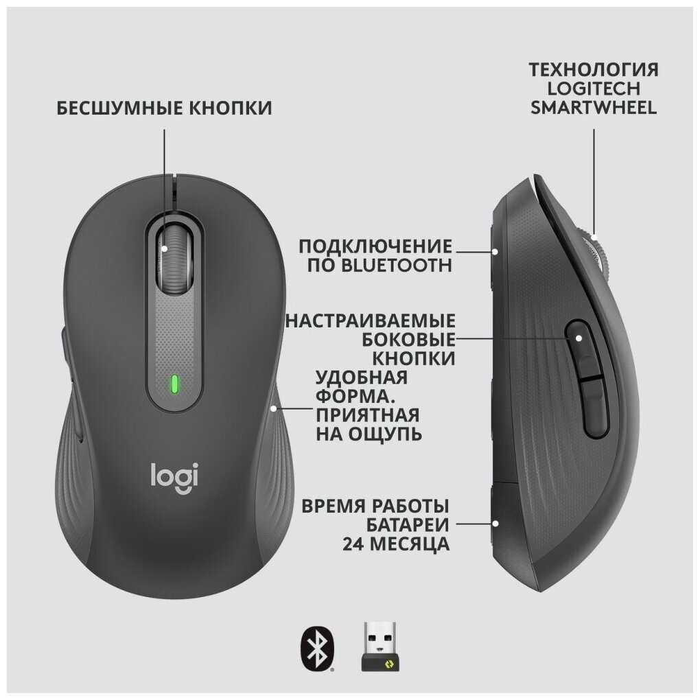 Беспроводная мышь Logitech Signature M650 (910-006253), графитовая