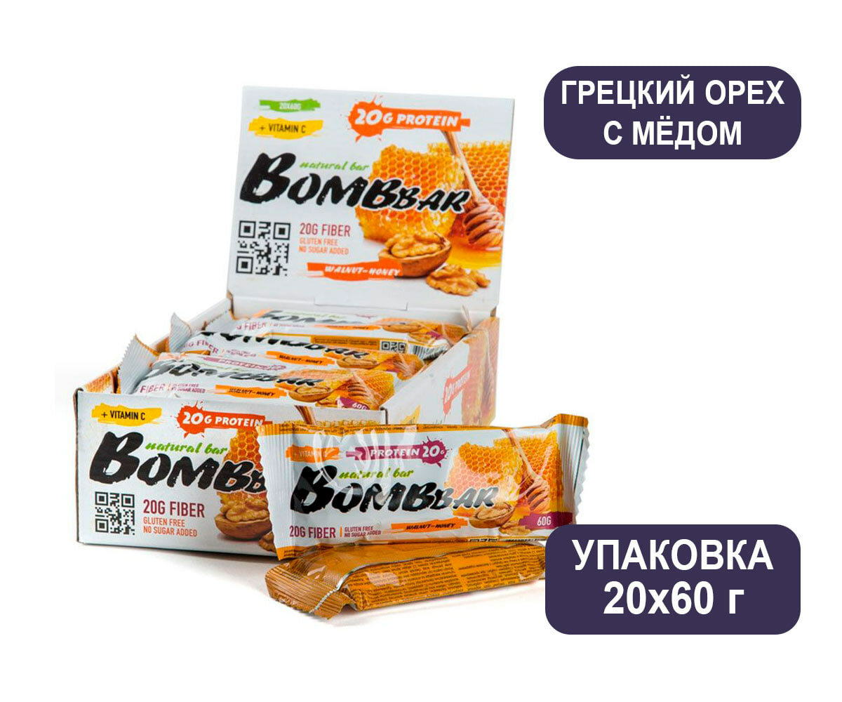 Протеиновый батончик BOMBBAR Protein Bar, Грецкий орех с медом (20шт по 60г)