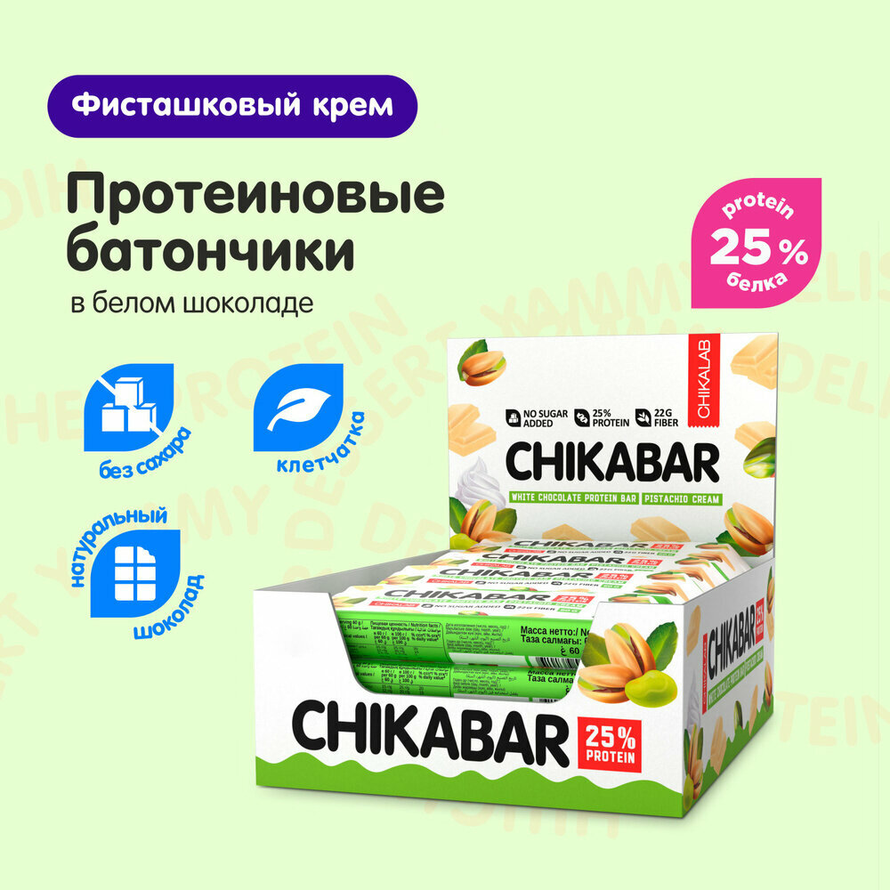 Протеиновый батончик Chikalab Chikabar 20 шт x 60 г, Фисташковый крем