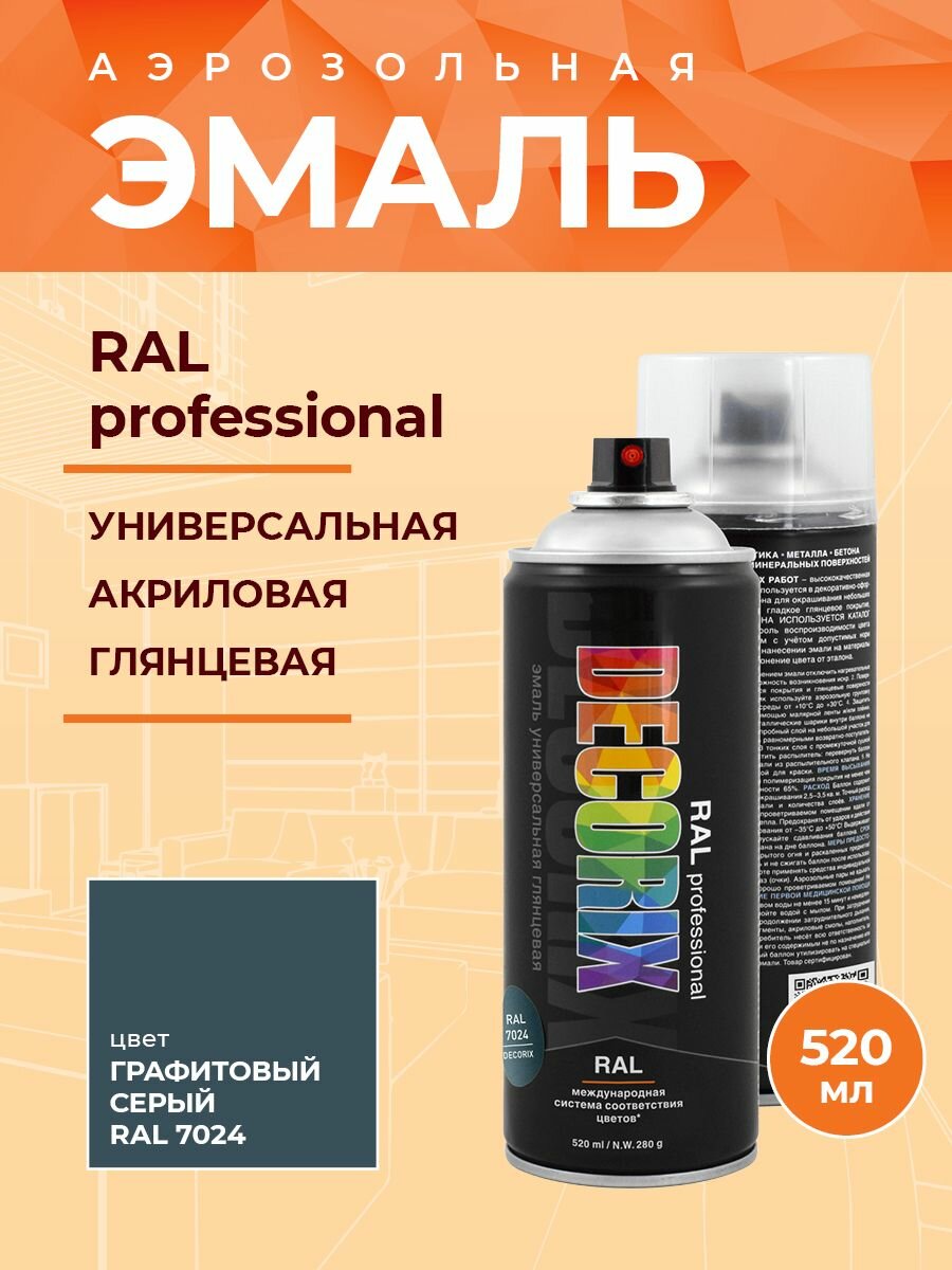 Decorix Аэрозольная эмаль RAL professional (графитовый серый, RAL 7024, глянец, 520 мл)