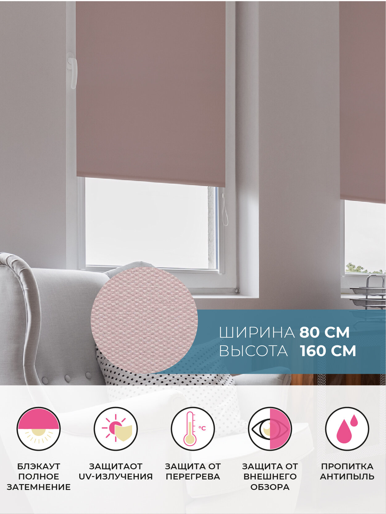 СохранитьРулонная штора Decofest Пыльная роза, блэкаут, 80 x 160 см интересное:
