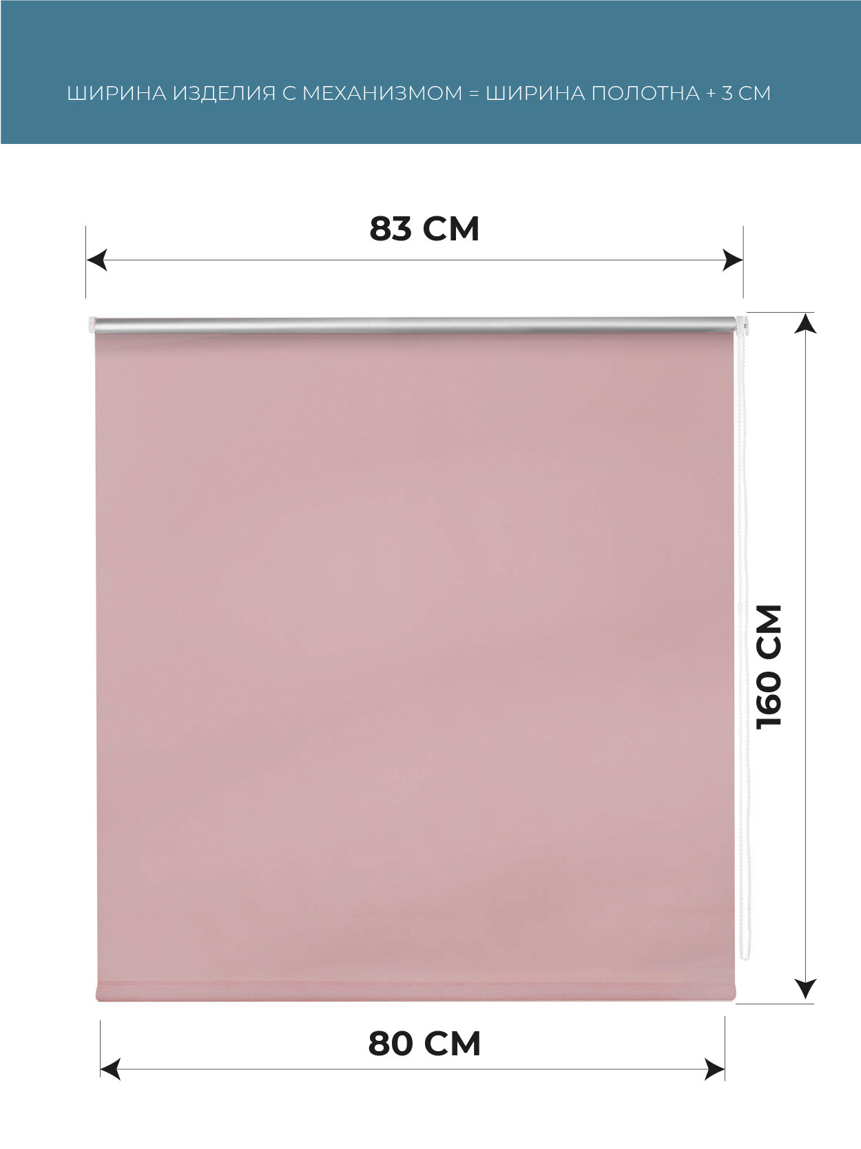 Рулонные шторы BLACKOUT / блэкаут 80 см x 160 см Пыльная роза Плайн DECOFEST (Мини)