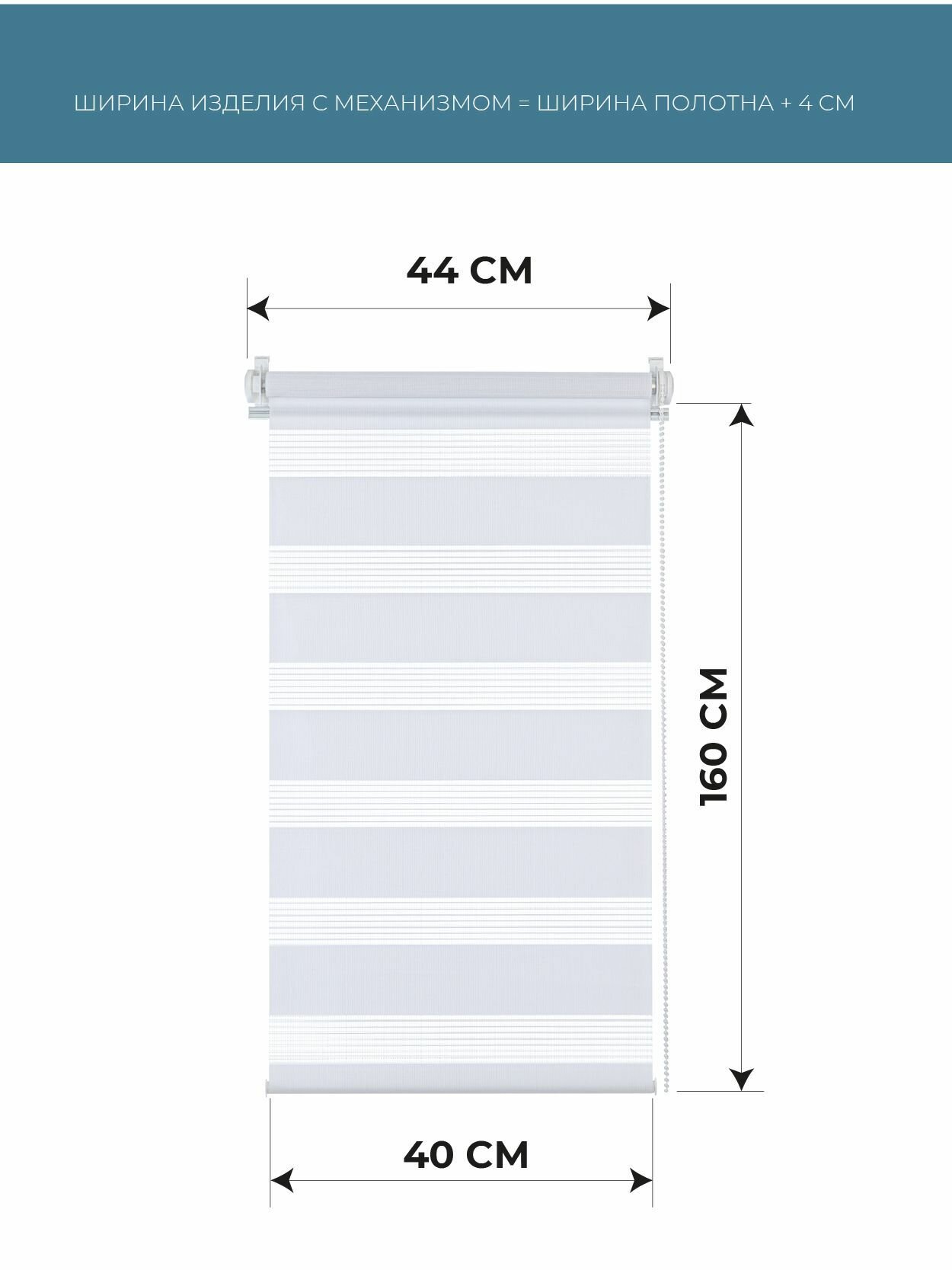 Рулонные шторы день ночь Бейс Белый DECOFEST 40 см х 160 см, жалюзи на окно