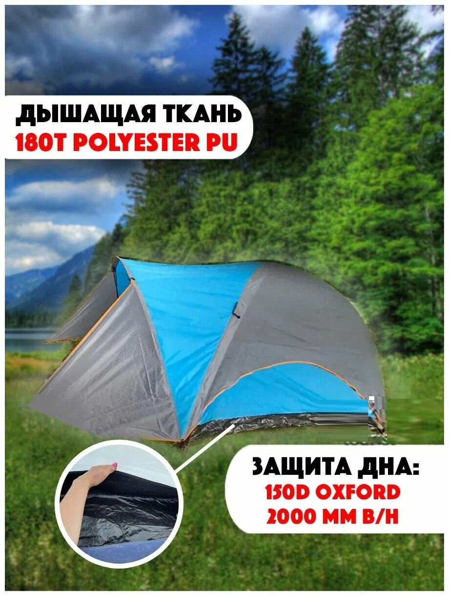 Палатка кемпинговая трехместная LANYU LY-1705 синий /Палатка / Туристическая / Для туризма / Двухслойная / С тамбуром / Палатка / Кемпинг / Рыбалка
