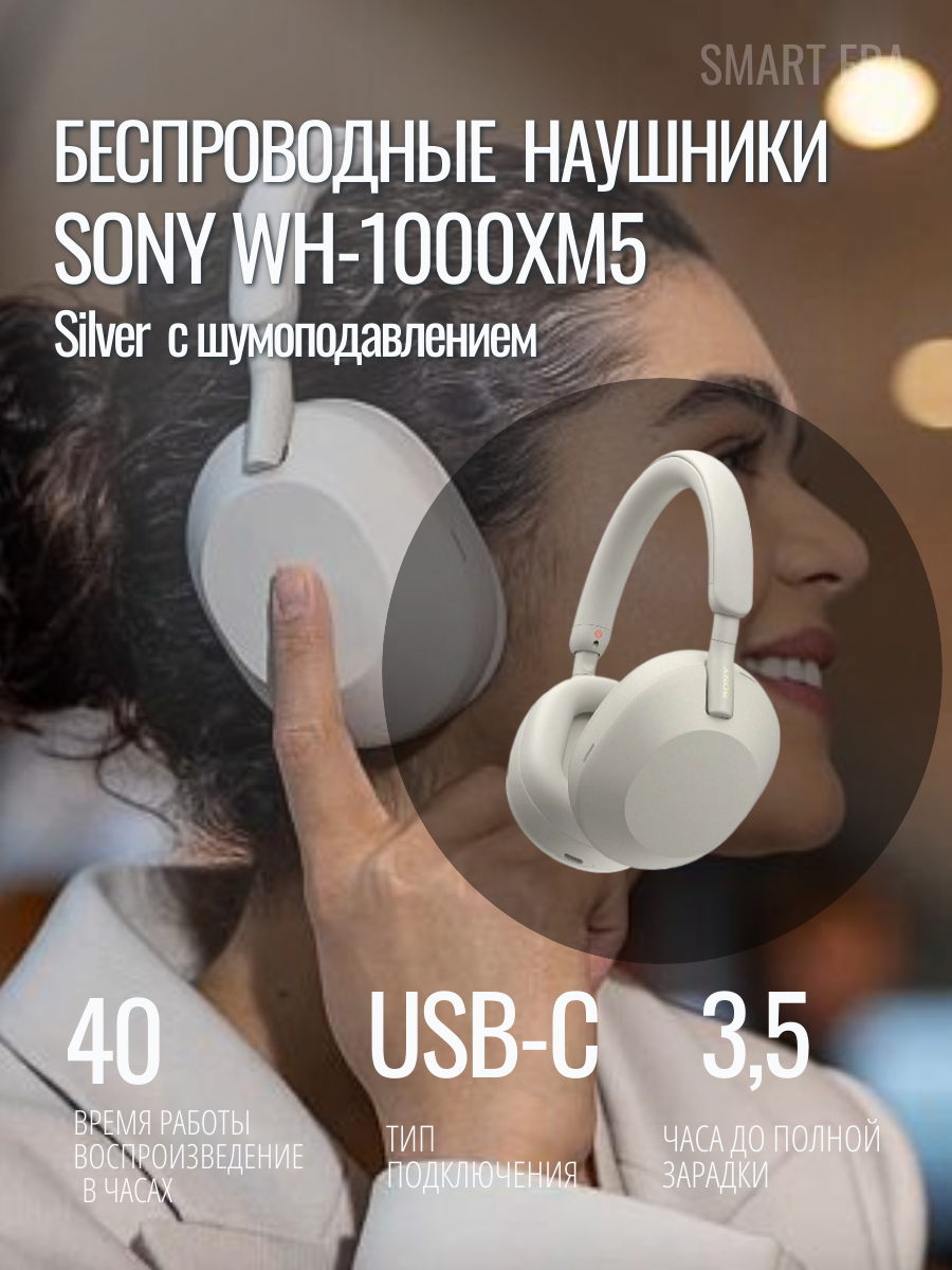 Беспроводные накладные наушники Sony WH-1000XM5 серебристый .