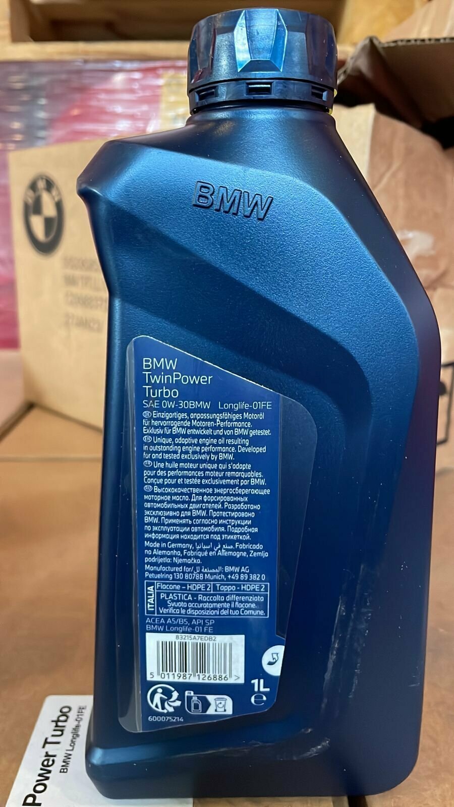 Синтетическое моторное масло BMW TwinPower Turbo Longlife-01 FE 0W-30 (срок хранения 4 года), 1 л