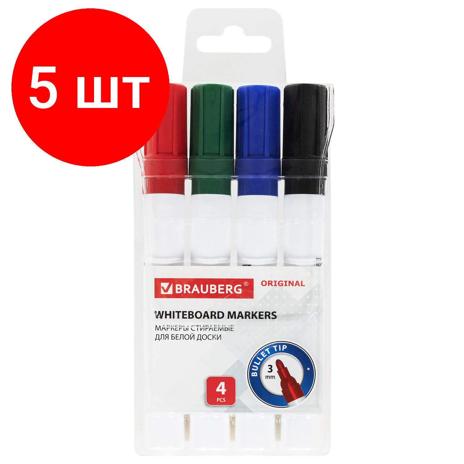 Маркеры стираемые для белой доски набор 4 цвета, BRAUBERG "ORIGINAL", 3 мм, 152120, 1 шт