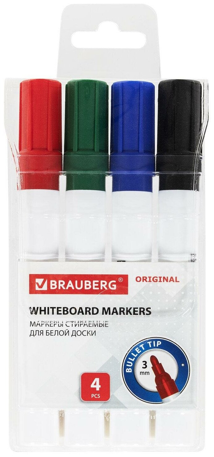Купить Маркеры стираемые Brauberg для белой доски, 4 цвета "Original" 3 мм