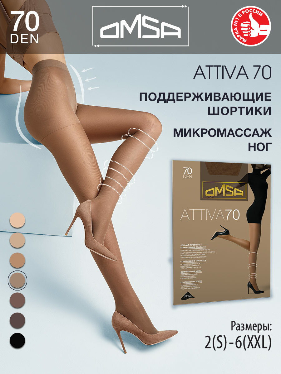 Колготки Omsa Attiva, 70 den, размер 2-S, sierra