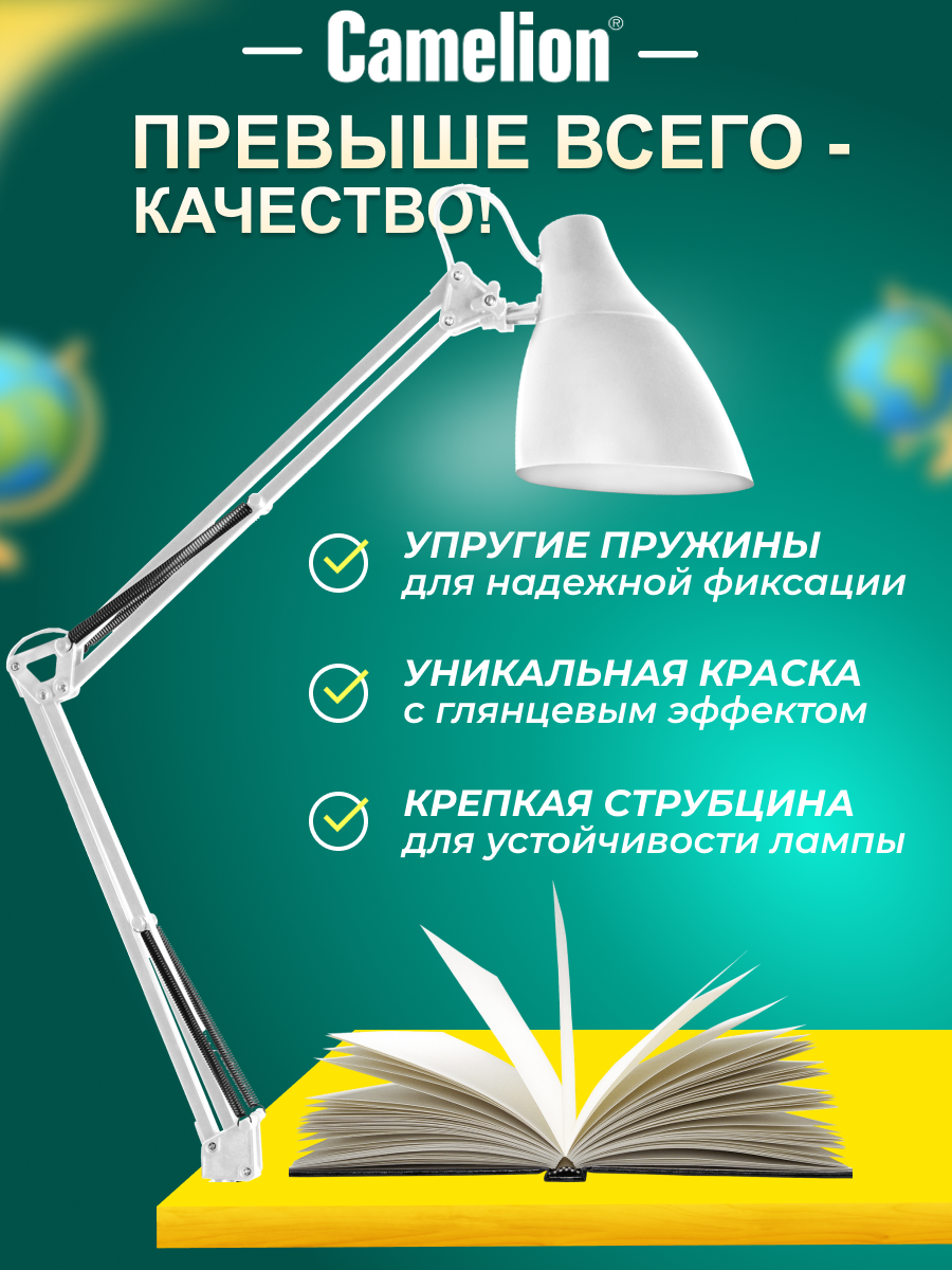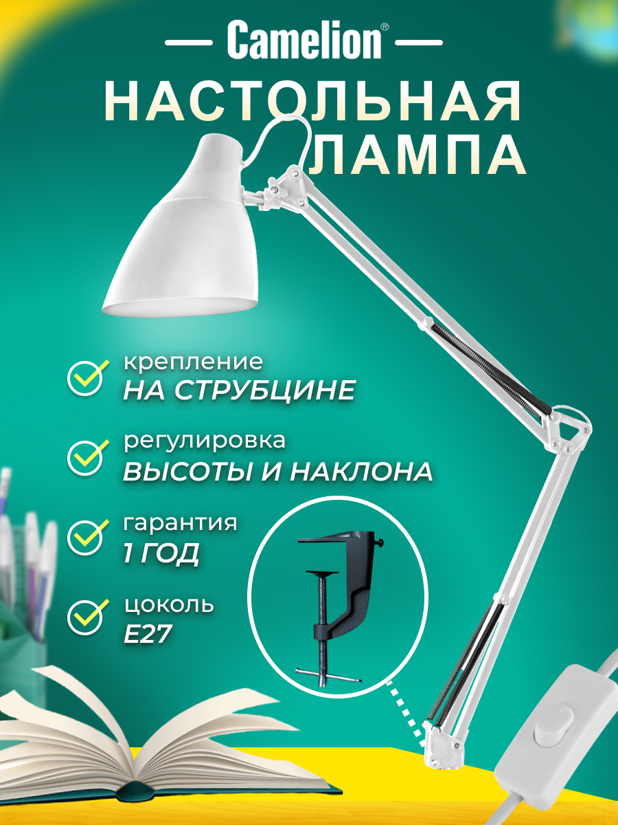 СохранитьСветильник на струбцине Camelion Светильник настольный с металлической струбциной KD-335 белый интересное: