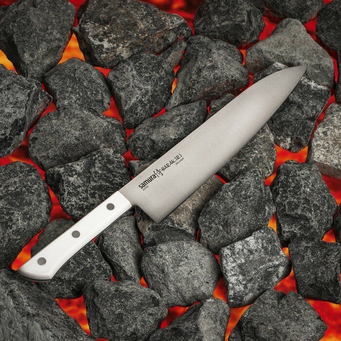 Нож кухонный гранд шеф Samura Harakiri, лезвие 24 см, белая рукоять, сталь AUS-8 интересное: