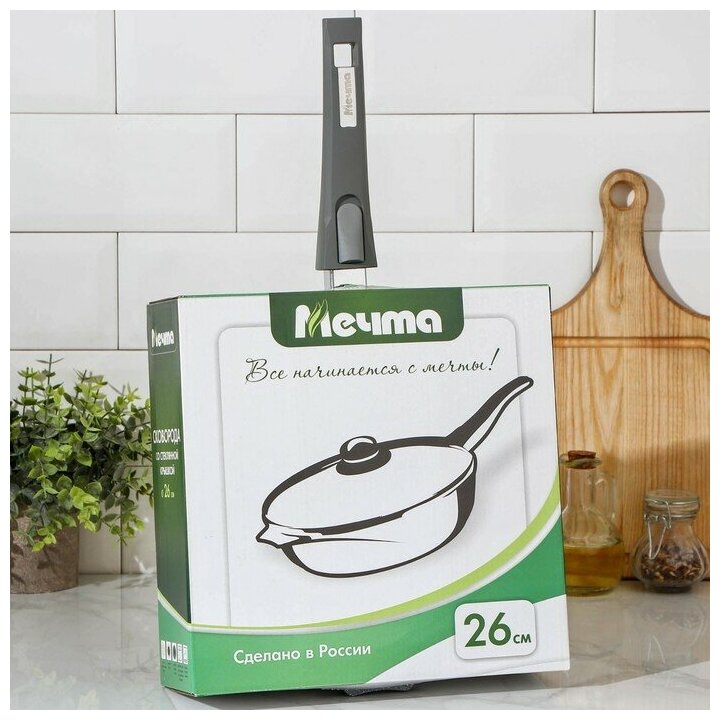 Сковорода с гранитным антипригарным покрытием крышкой и съемной ручкой 26 см Мечта