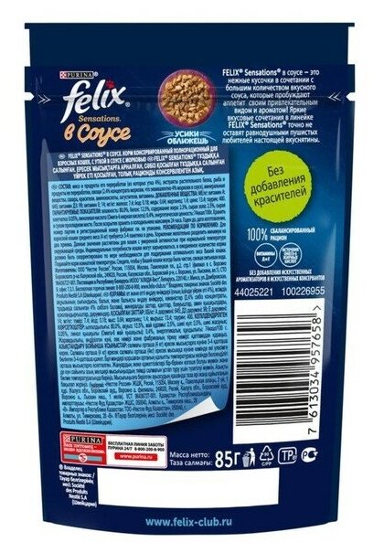 Влажный корм FELIX Sensations для кошек, утка/морковь в соусе, пауч, 85 г