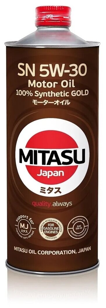 Масло моторное Mitasu Gold 5w30, синтетическое, API SN, ILSAC GF-5, для бензинового двигателя, 1л, арт. MJ-101/1