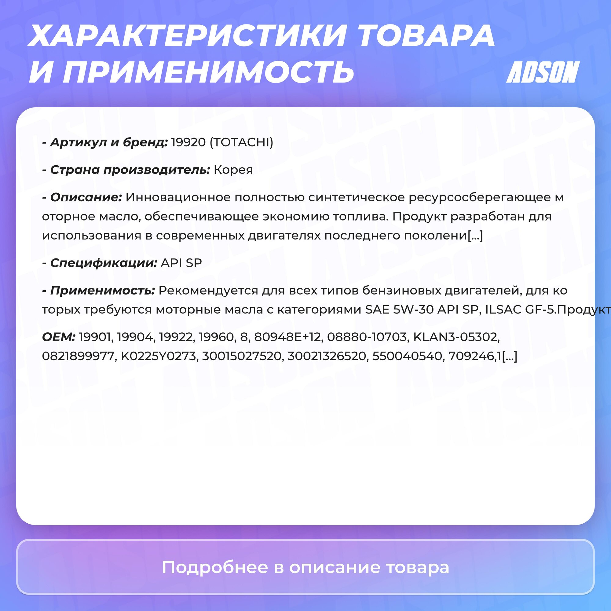 Масло моторное синтетическое 5W30 4л. TOTACHI