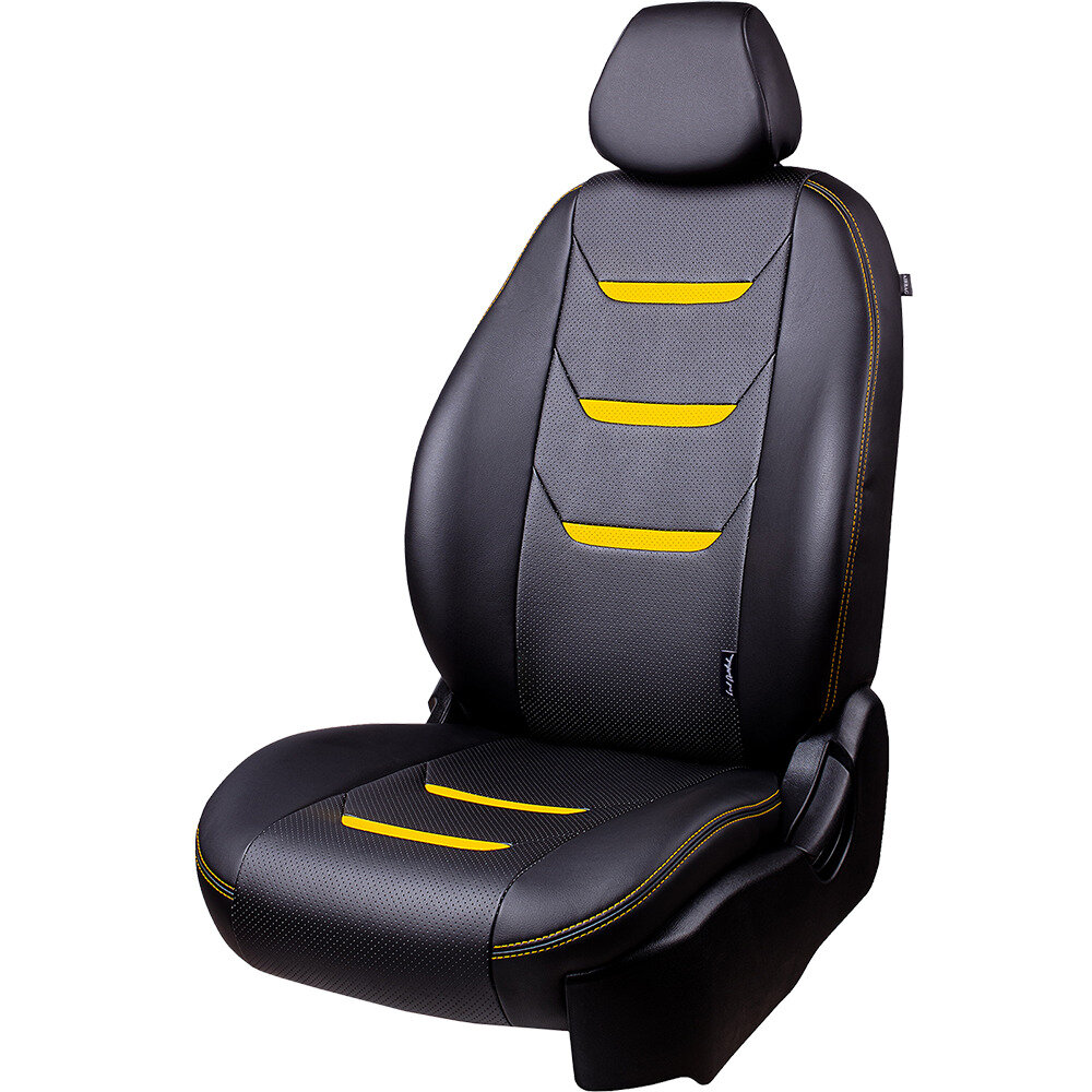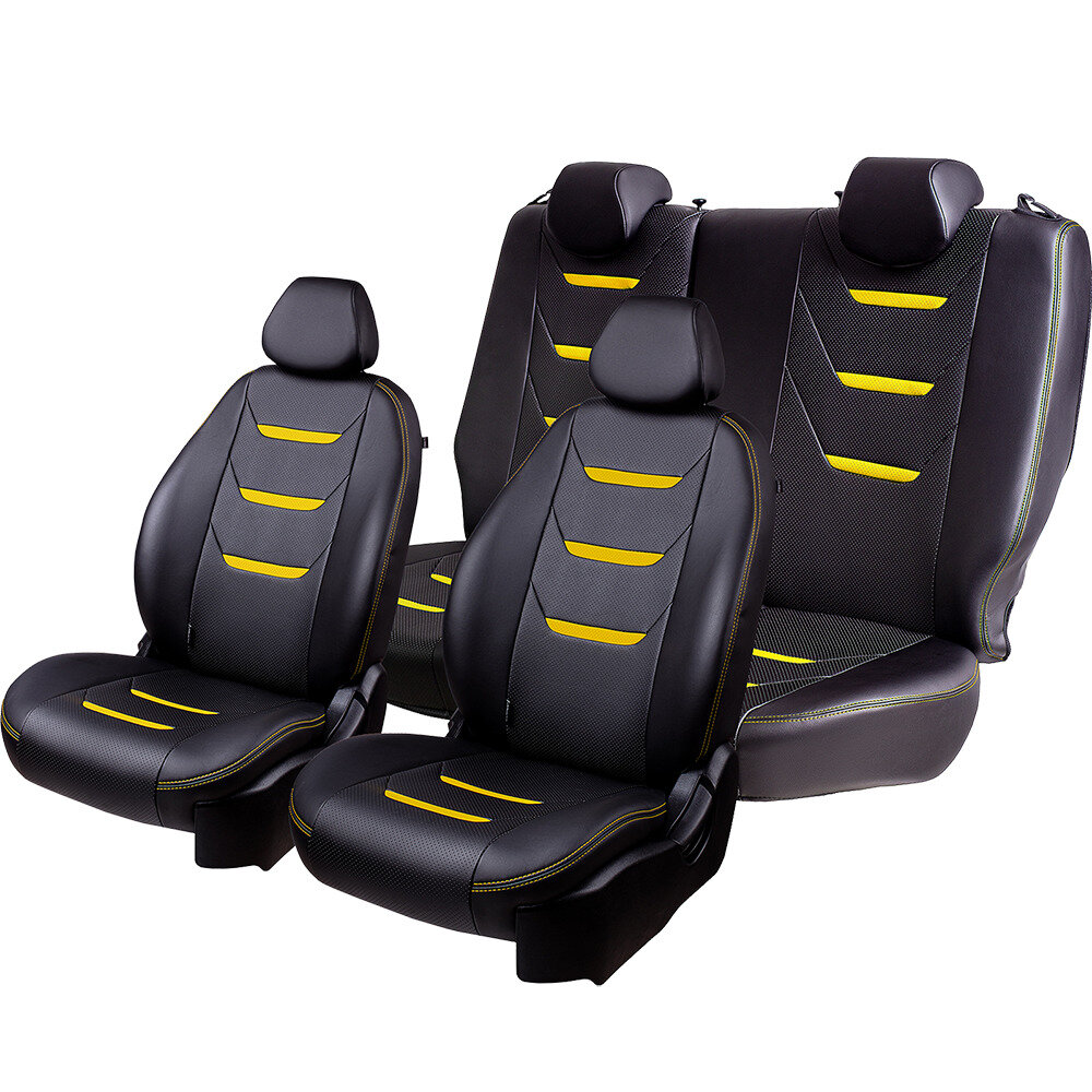 Комплект каркасных чехлов 5D CarFashion Consul Plus, чёрные, отстрочка серая
