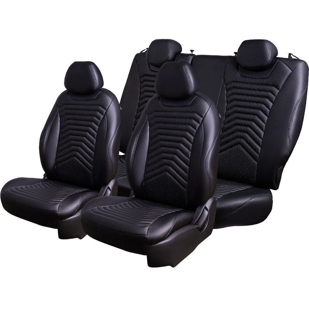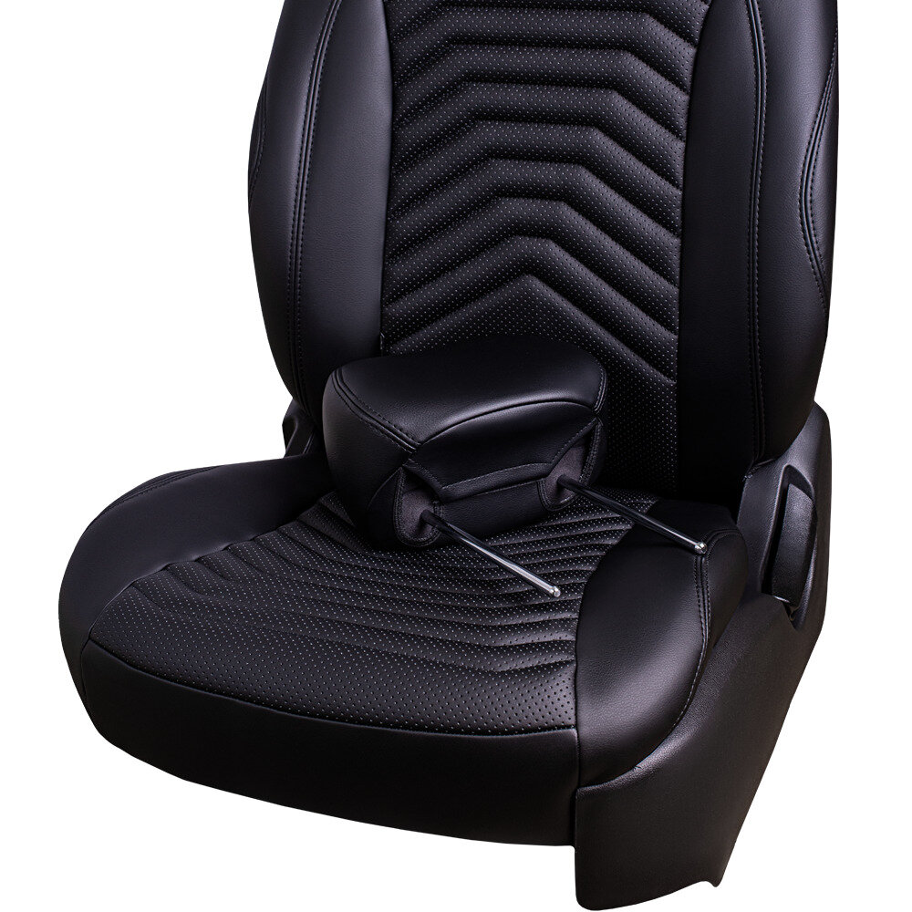 Комплект каркасных чехлов 5D CarFashion Consul Plus, чёрные, отстрочка серая