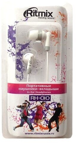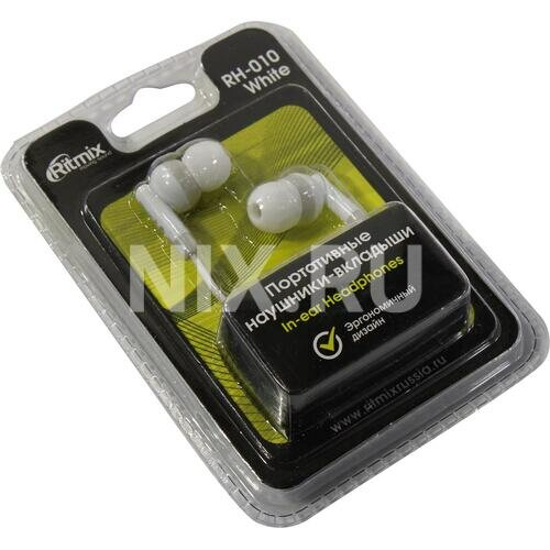 Купить Наушники вкладыши Ritmix RH-010 внутриканальные(затычки) - белые