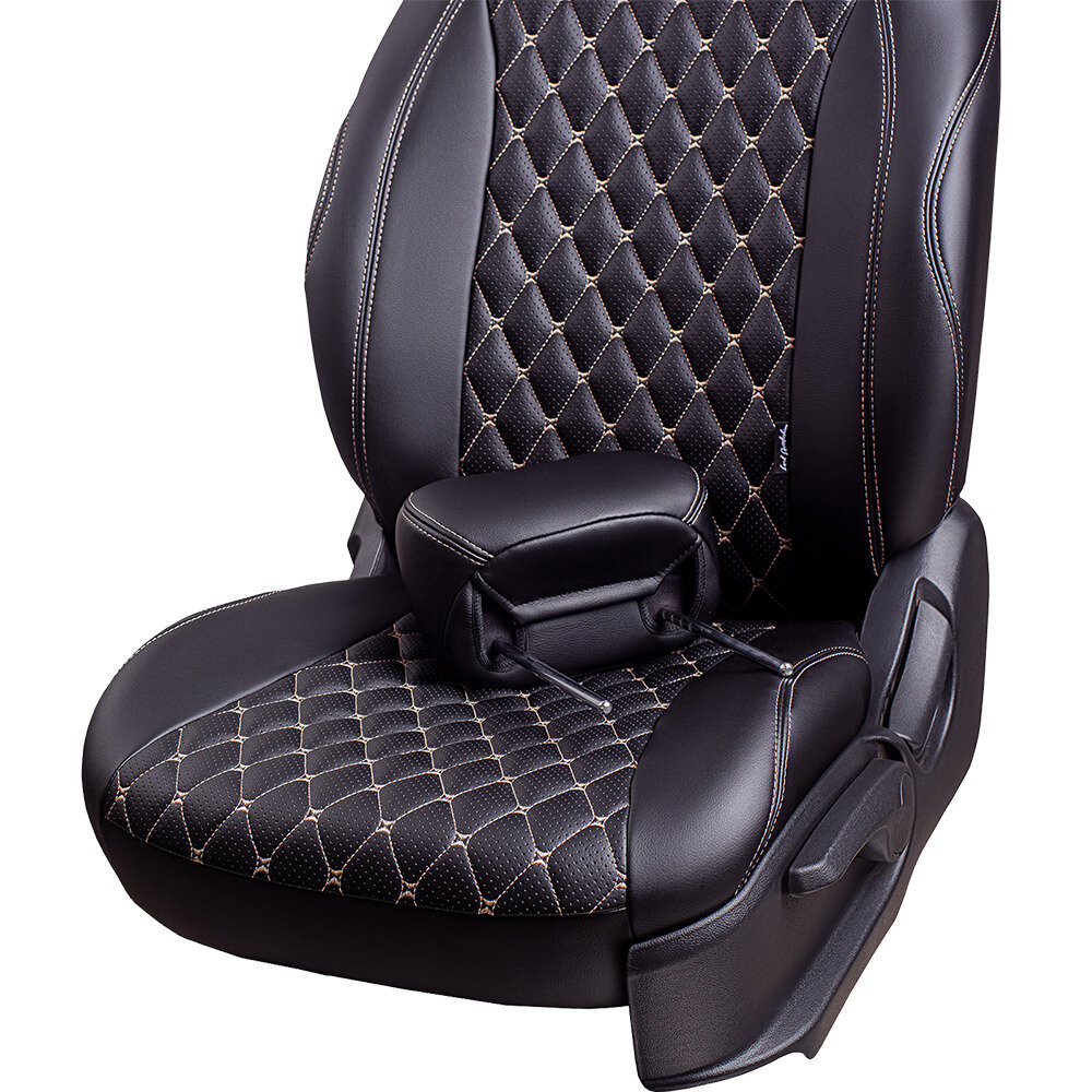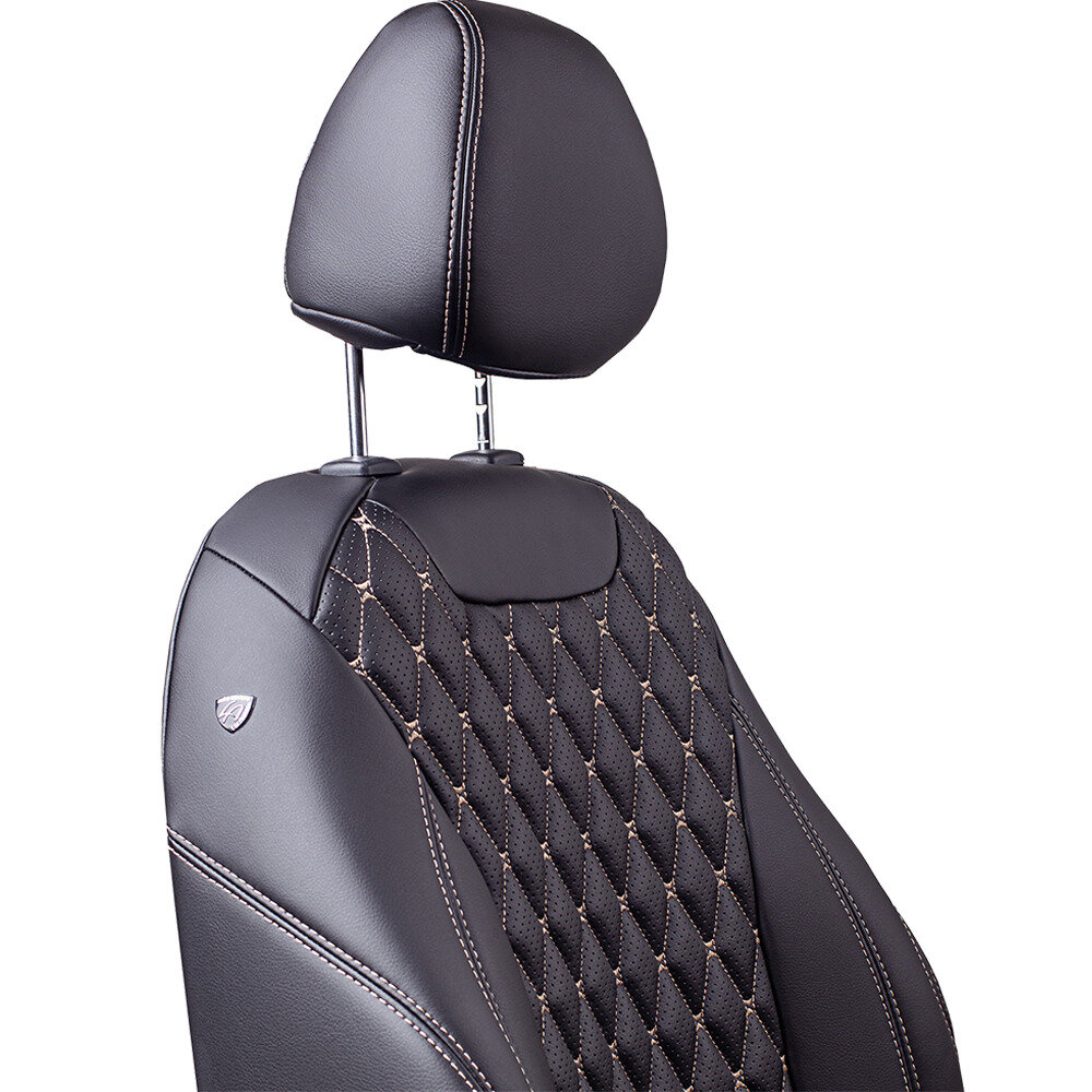 Комплект каркасных чехлов 5D CarFashion Consul Plus, чёрные, отстрочка серая