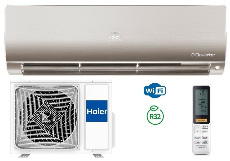 Сплит-система HAIER FLEXIS DC-Inverter AS25S2SF1FA-G/1U25S2SM2FA, 22м2, 2,6кВт, R32, золотистый