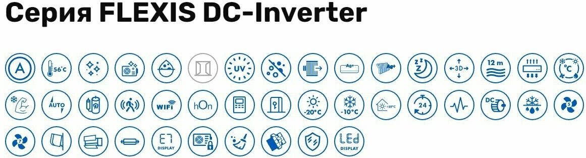 | Дополнительные функции | автоматическое поддержание температуры / автоперезапуск / ионизация / разморозка внешнего блока / самодиагностика / самоочистка внутреннего блока |