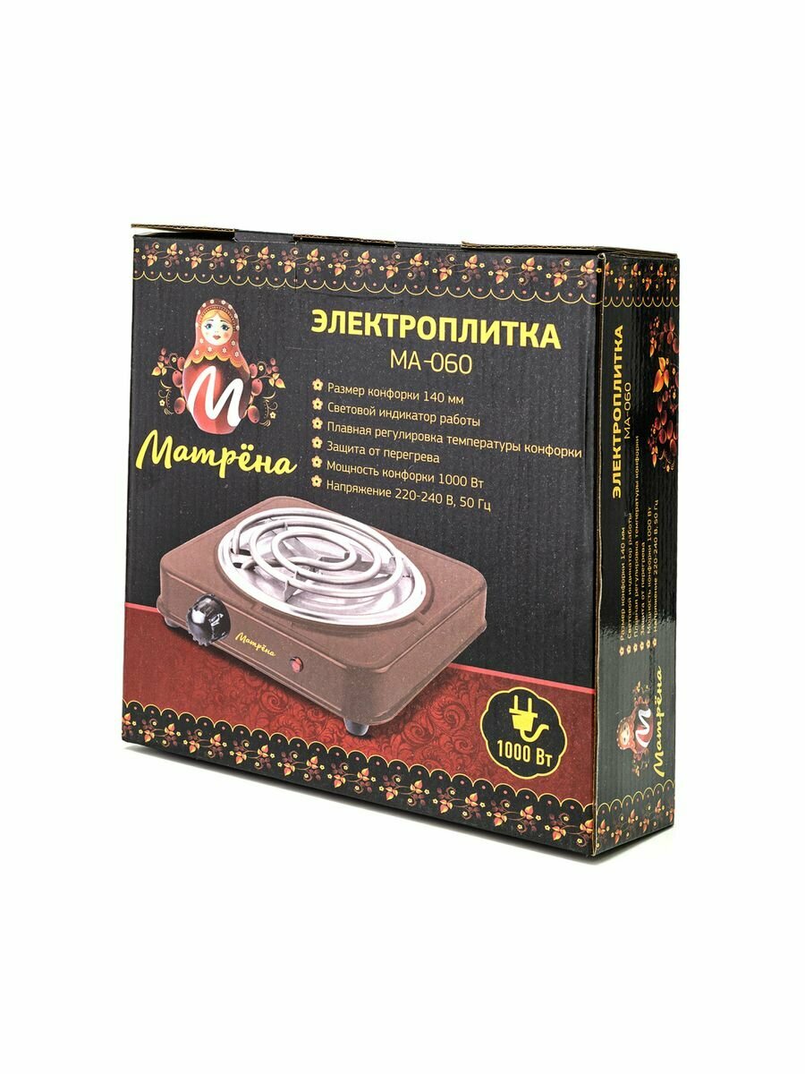 Электроплитка Матрена МА-060, 1 конфорка, спираль (ТЭН) 1кВт, коричневая 6056