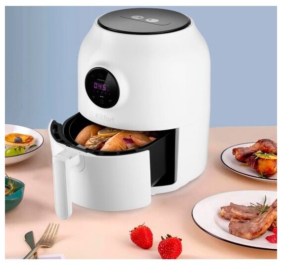 Можно готовить совершенно разные блюда от картошки до очень вкусных мясных изделий. Очень просто чистится, не шумный и отлично вписывается в интерьер любой кухни. Дизайн просто отличный. За счет специальной формы еда обдувается горячим воздухом со всех сторон, но не стоит накладывать слишком много за один раз. |