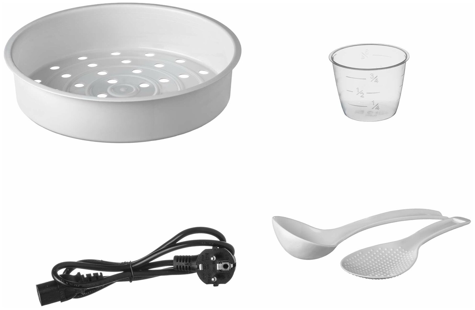 | Комплектация | мультиварка, съемная чаша, контейнер для приготовления на пару, ложка для риса, ложка для супа, мерный стакан, шнур питания, руководство по эксплуатации, гарантийный талон |