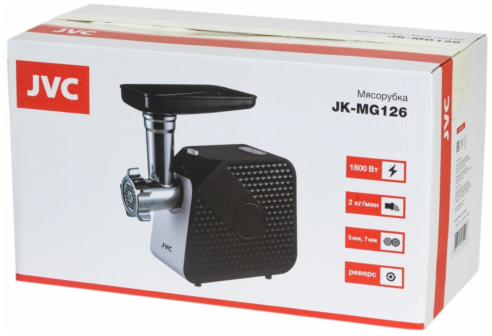 Мясорубка JVC JK-MG126 с реверсом, решетки 5 и 7 мм, насадки для колбасок и кеббе, нож из нержавеющей стали, 1800 Вт