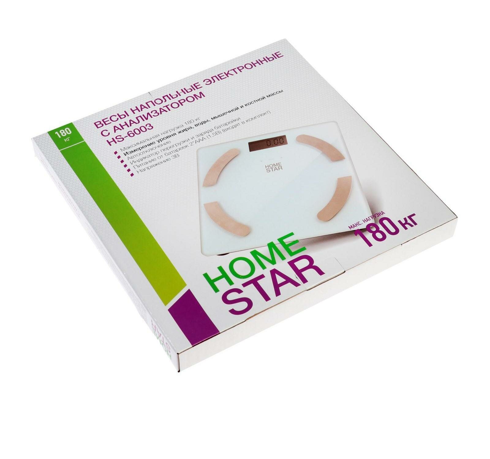 Весы напольные HOMESTAR HS-6003, диагностические, до 180 кг, 2хААА, стекло, белые интересное: