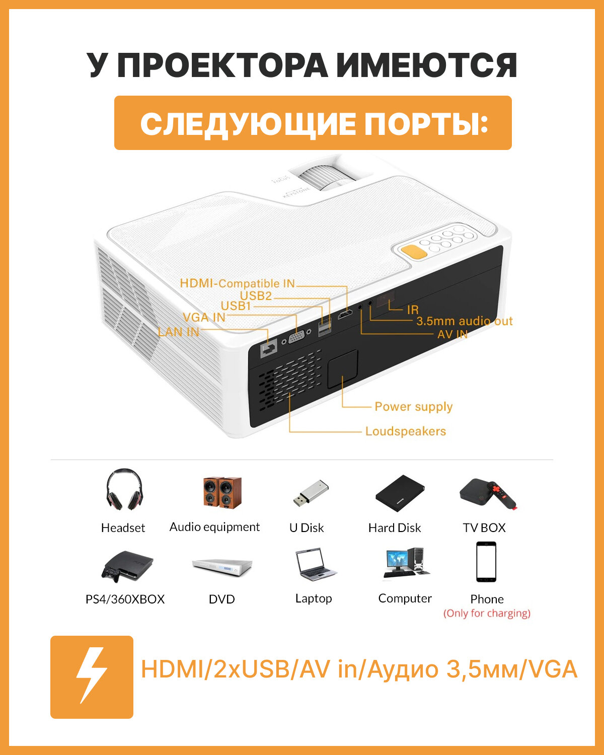 Проектор Everycom YG625A LED Mirroring Version интересное: