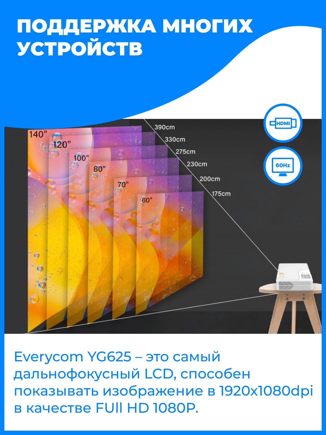 | Мин. проекционное расстояние | 1 м |