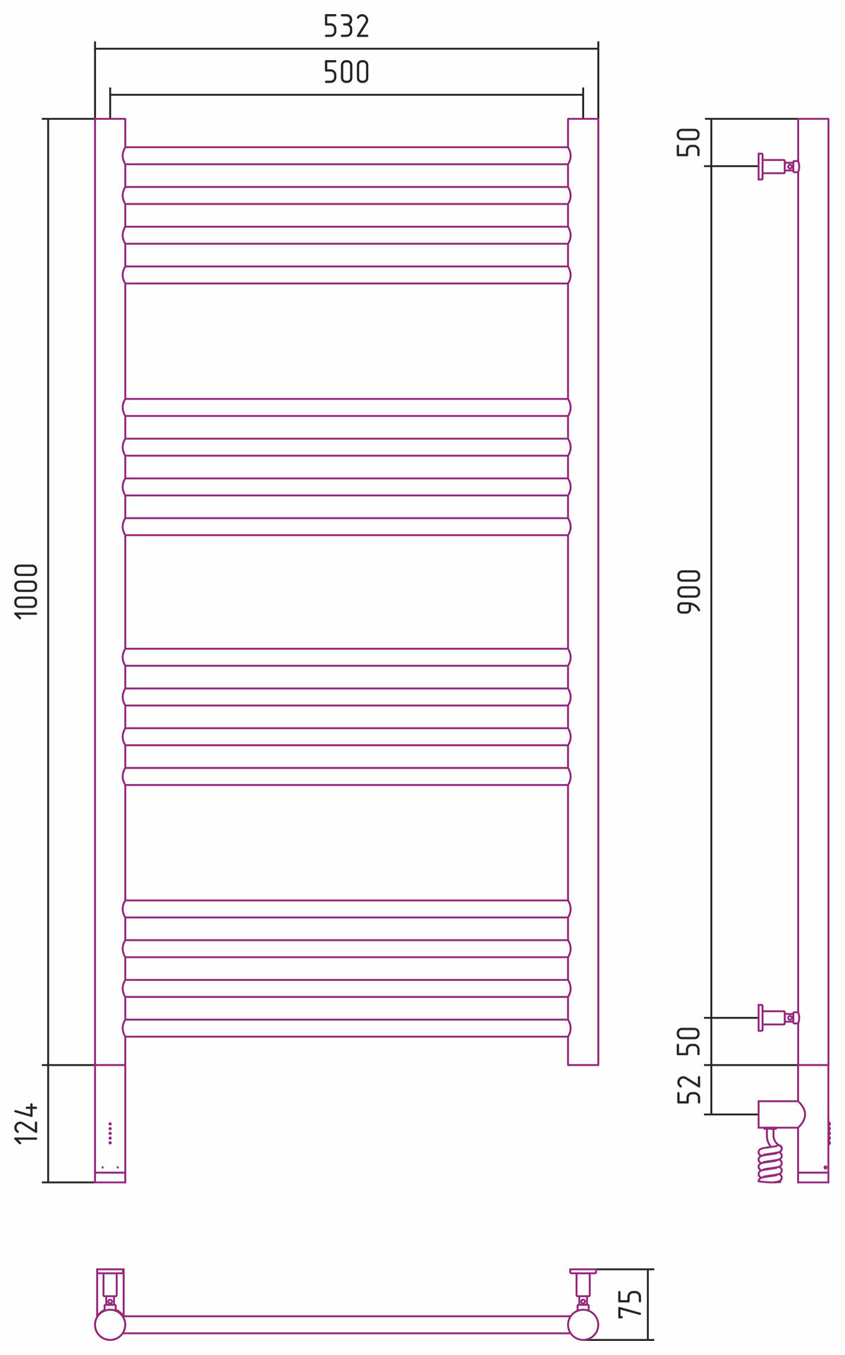 Электрический полотенцесушитель Сунержа Богема 3.0 прямая 1000х500 лтэн (без покрытия)