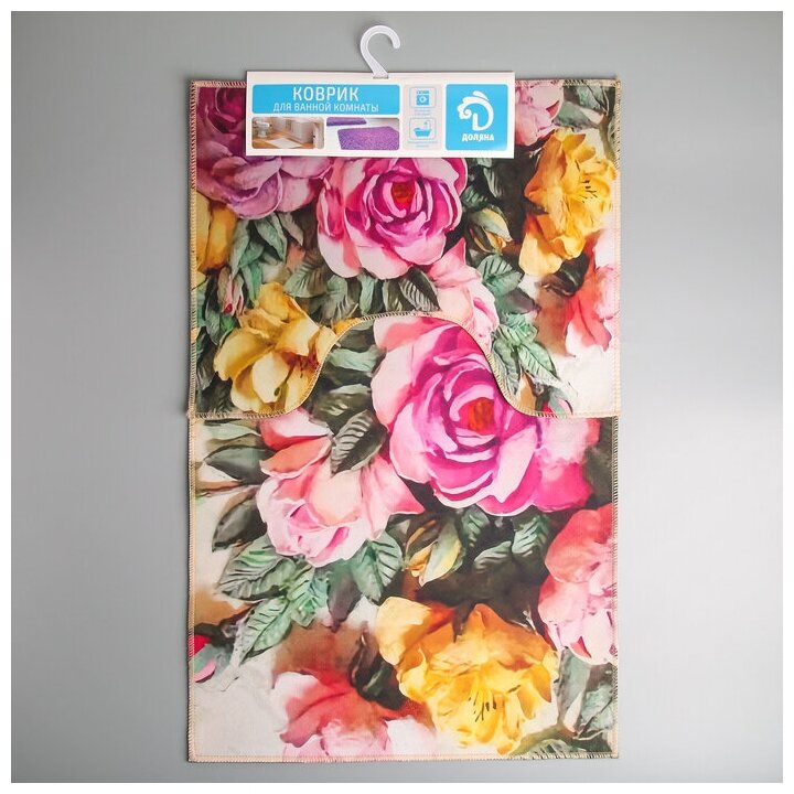 Купить Набор ковриков для ванной и туалета Доляна "Акварель пионы", 2 шт: 40x50, 50x80 см