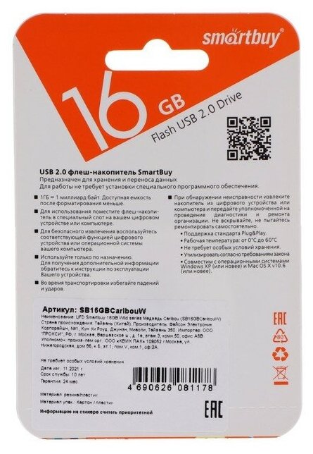 UFD Smartbuy 16GB Wild series Медведь Caribou (SB16GBCaribouW) интересное: