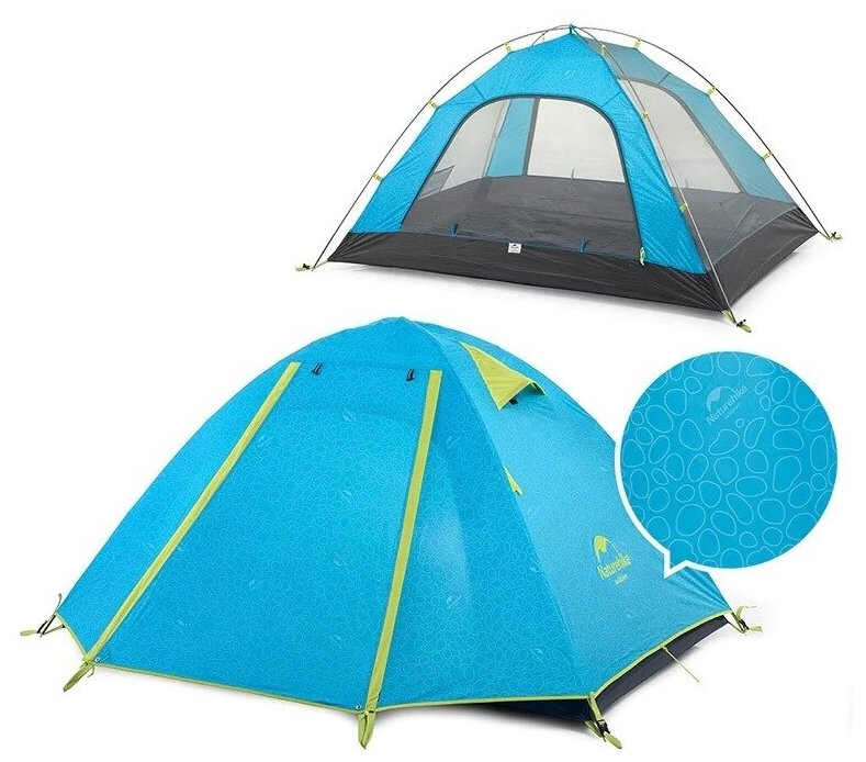 Палатка Naturehike 2022 P-Series Aluminum Pole Tent With New Material 210T65D Embossed Design 2 Man Sea Blue