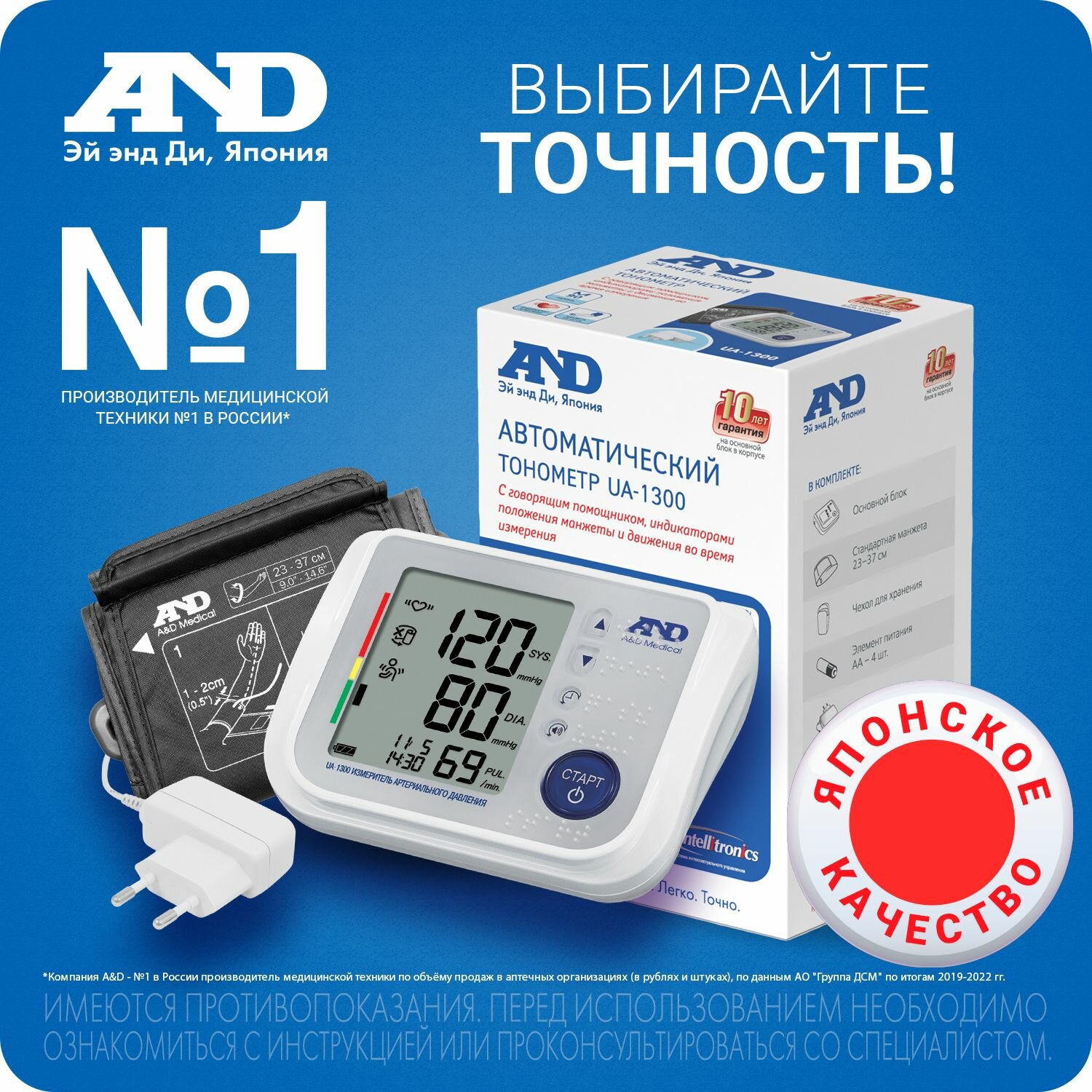 Тонометр AND UA-1300 автоматический + Адаптер