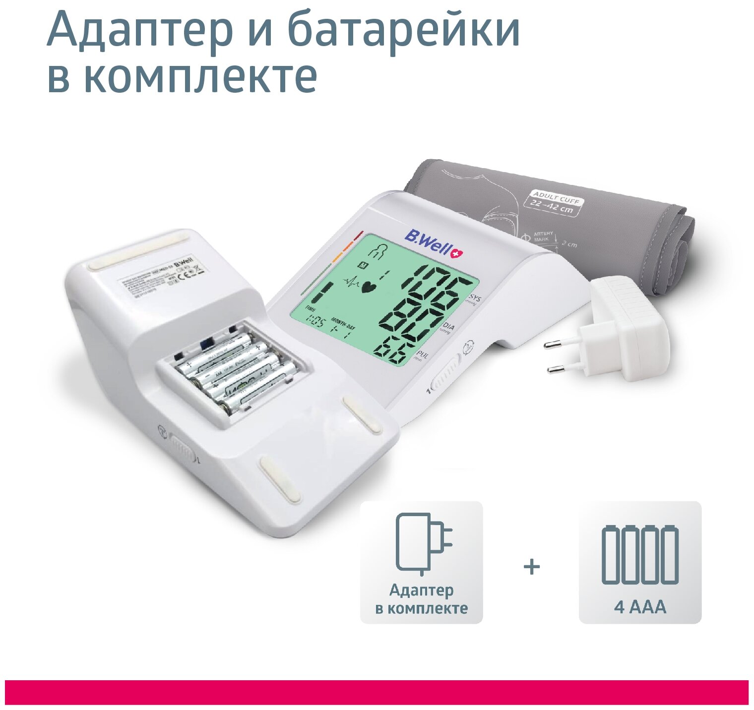 B.Well MED-55ad / БиВелл - автоматический тонометр с адаптером и универсальной манжетой