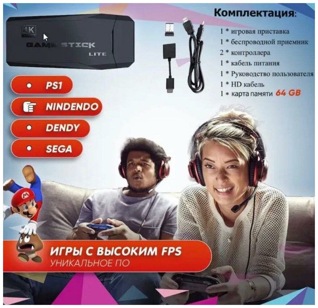 Портативная игровая приставка Game Stick Lite 64 GB (10227 игр) интересное: