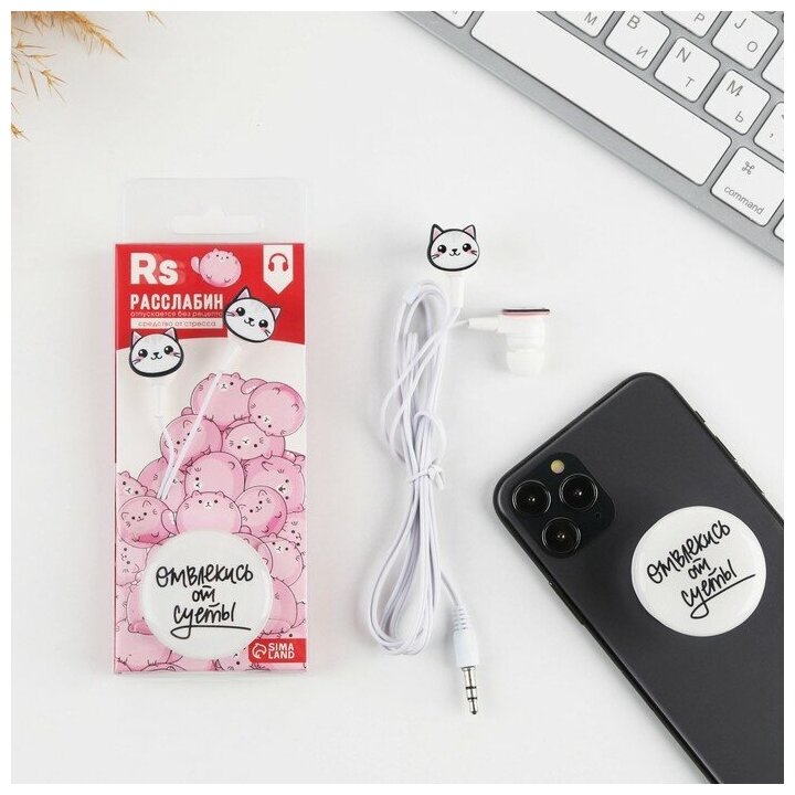 Набор наушники и держатель "Отвлекись от суеты", модель VBT 1.27, 13,5 х 6 см./В упаковке шт: 1 интересное: