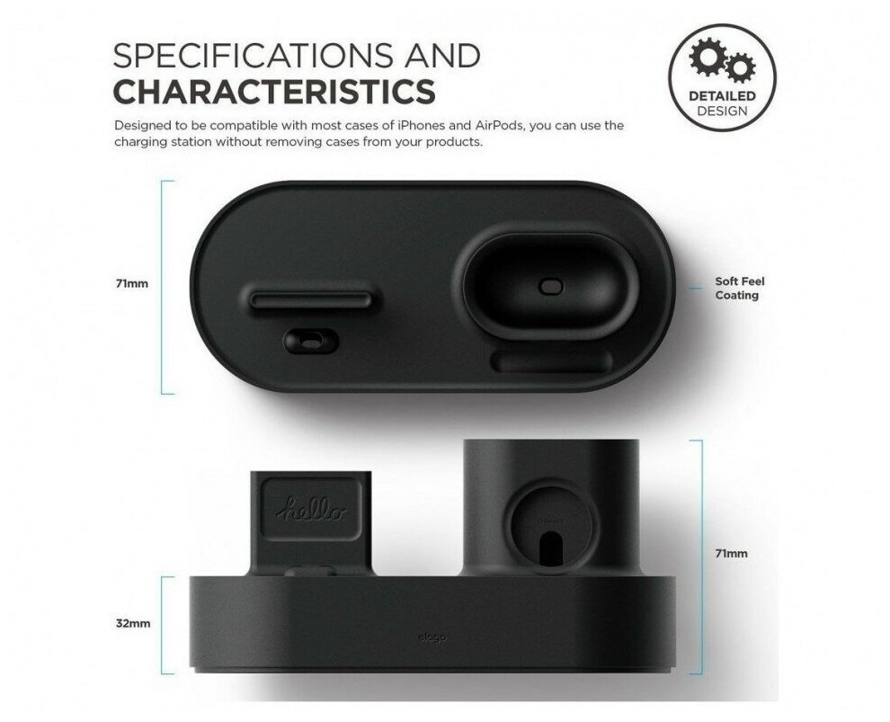 Док-станция Elago Charging hub 3 в 1 для AirPods/iPhone/Apple Watch, цвет Черный (EST-TRIO-BK) интересное: