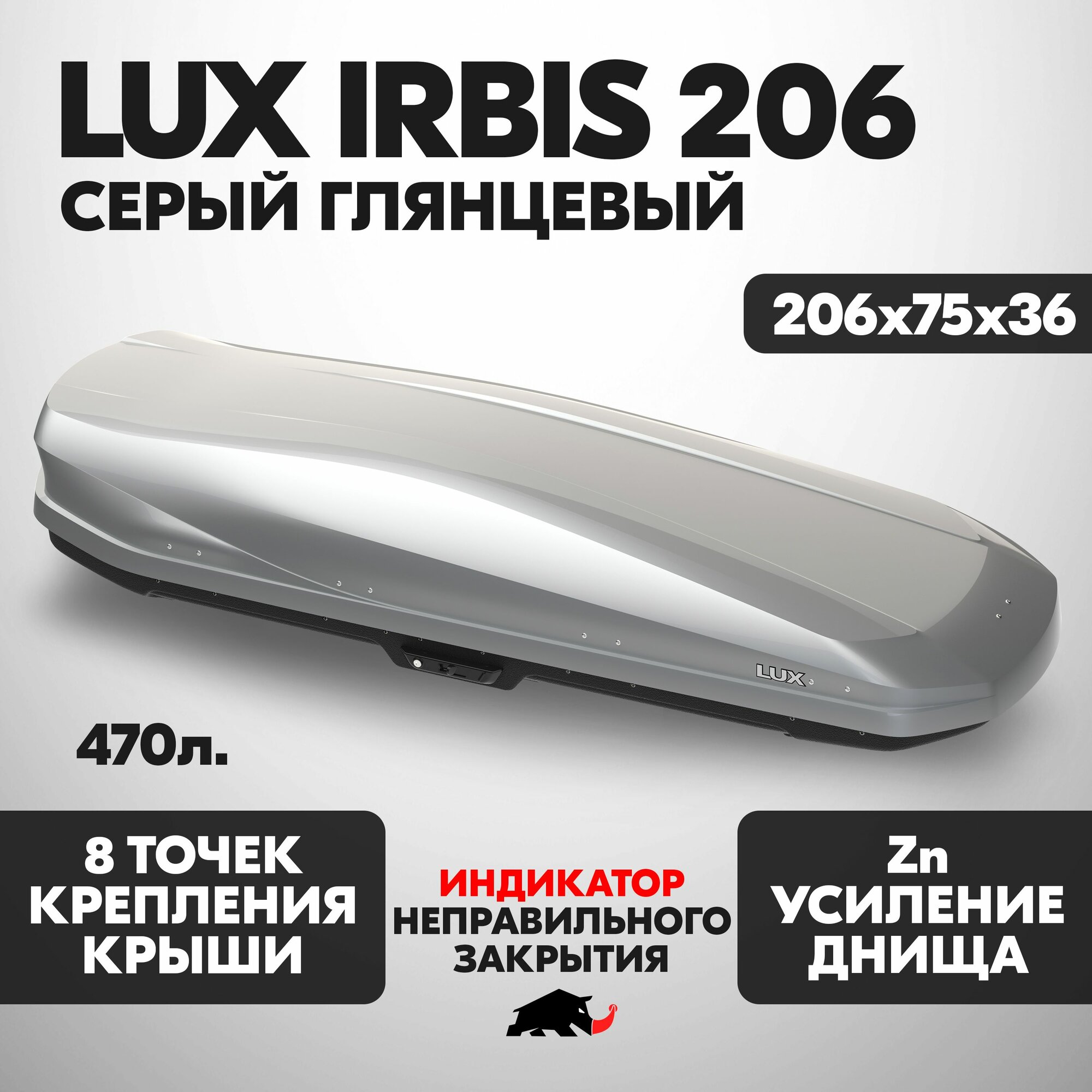 Бокс на крышу авто Lux IRBIS, 470л, 206х75х36см , серый металлик