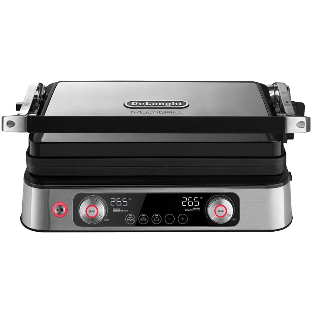 Электрогриль DeLonghi MultiGrill CGH1112D с 2 съемными панелями, независимой регулировкой зон нагрева и 3 режимами, серебристый/черный