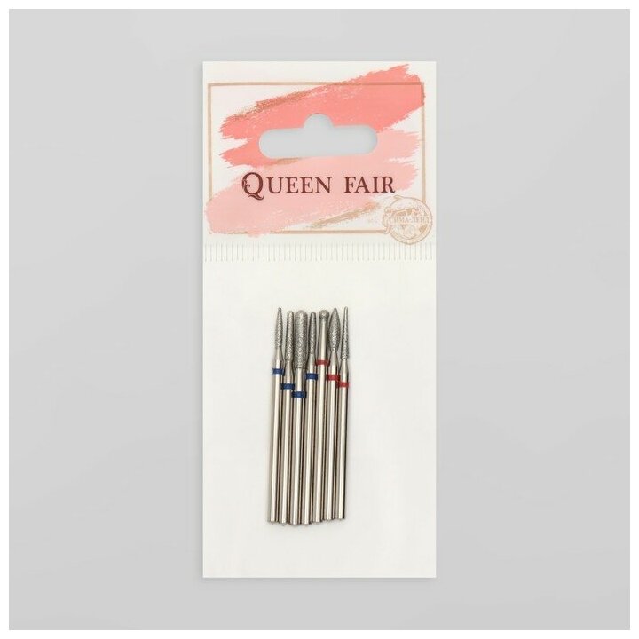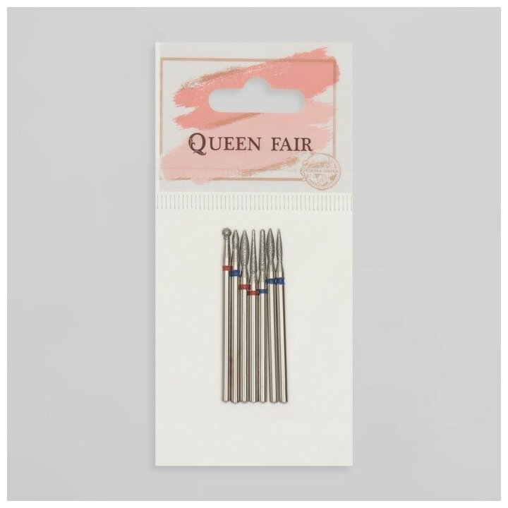 Queen fair Фрезы алмазные для маникюра, 7 шт, форма и зернистость ассорти