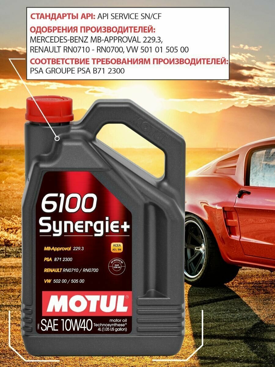 Масло моторное MOTUL Synergie+ 6100 10W40, Technosynthese 4 литра Масл MOTUL 10W40 61 101491/109463