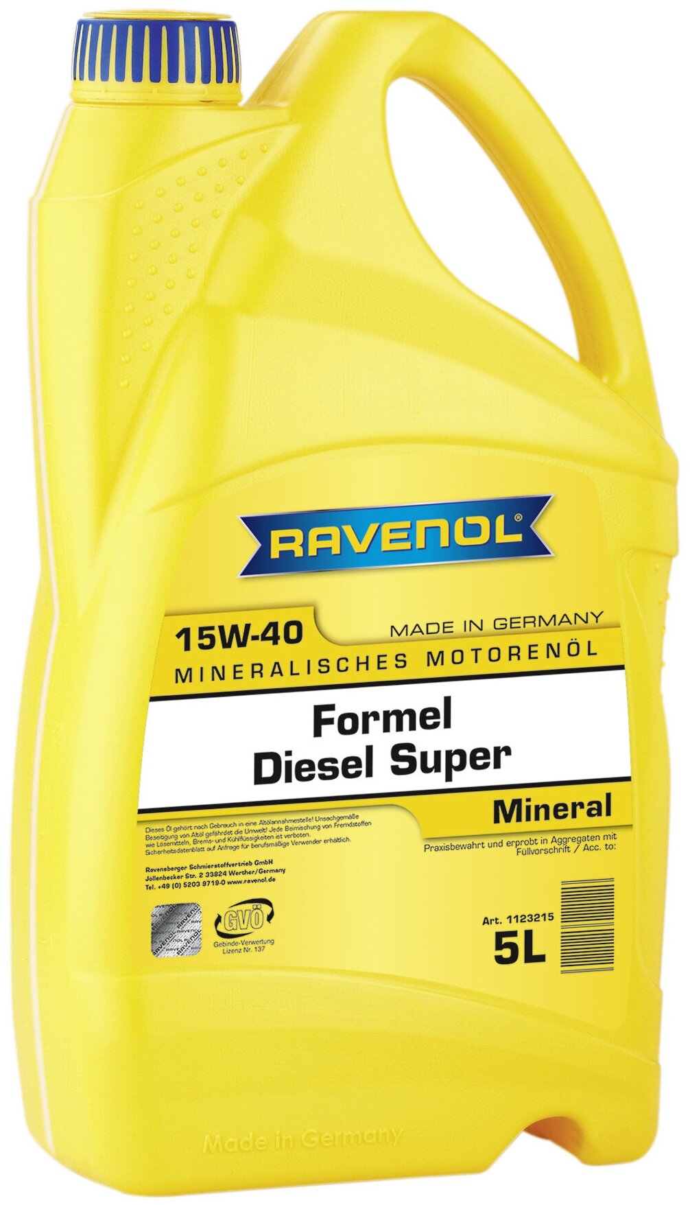 RAVENOL 4014835756953 Моторное масло RAVENOL Formel Diesel Super SAE 15W-40 ( 5л) new