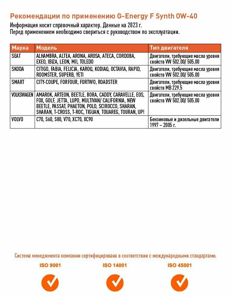СохранитьМасло G-Energy F Synth 0W-40 ITALY 1л интересное: