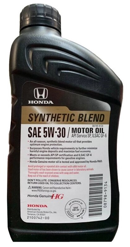 СохранитьHONDA масло моторное полусинтетическое 946МЛ - 5W30 SYNTHETIC BLEND (SN, GF- 087989134 интересное: